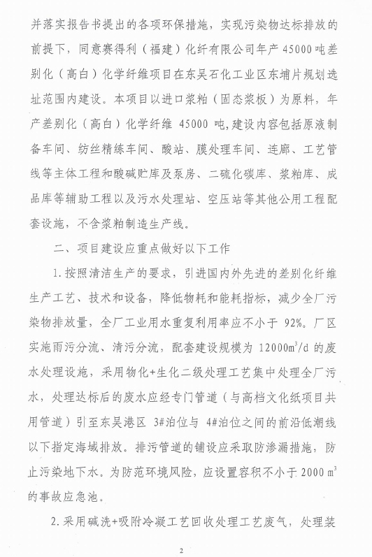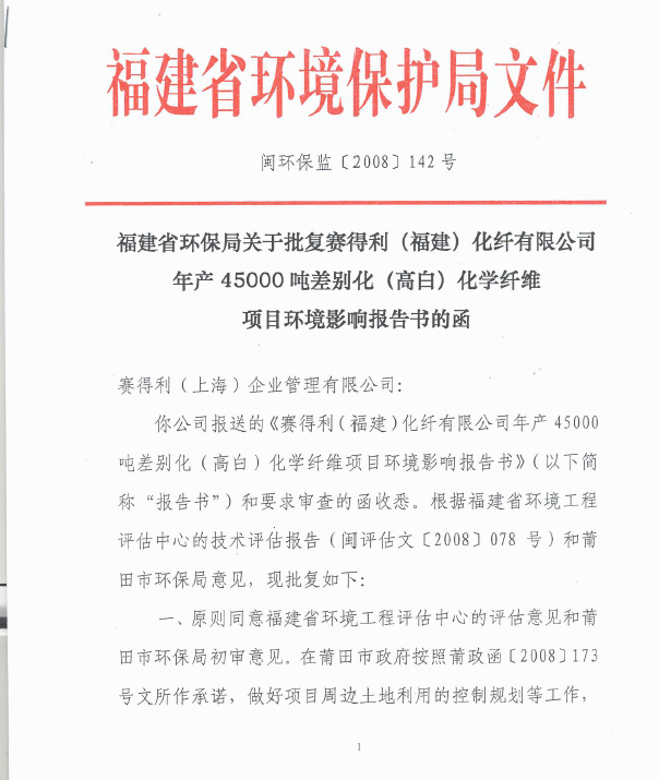 賽得利(福建)4.5萬環評批文