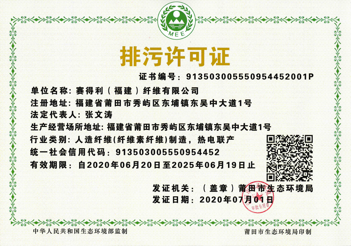 賽得利(福建)纖維有限公司排污許可證(正本)