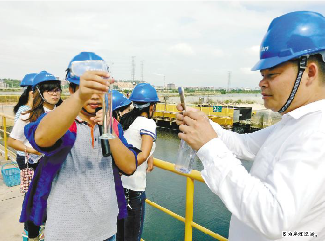 在廠區(qū)南部的生化池,村民們走上去,近距離參觀。生化池已經(jīng)被藍(lán)色玻璃鋼全部蓋住,6個(gè)工人正在給玻璃鋼之間的接縫涂上密封劑。公司員工說,生化池加蓋前,因?yàn)樯仄貧鈺?huì)產(chǎn)生“臭氣”,引起周邊群眾產(chǎn)生意見。7月底,公司投資2000多萬元,將整個(gè)生化池用藍(lán)色玻璃鋼全部蓋住,再將臭氣收集抽至廢氣處理設(shè)施中,通過光分解、活性炭吸附等一系列工序處理凈化后,才通過36米高的排氣口排出。據(jù)悉,該處理方案經(jīng)過了環(huán)保部專家的論證認(rèn)可,除臭效果明顯。有村民還要求打開排氣管道旁的一個(gè)小口,湊上去聞一聞處理后氣體的味道。在污水處理廠,工作人員將池子中處理過的污水舀起,裝在燒杯中展示給村民看,杯中的水清澈透明。